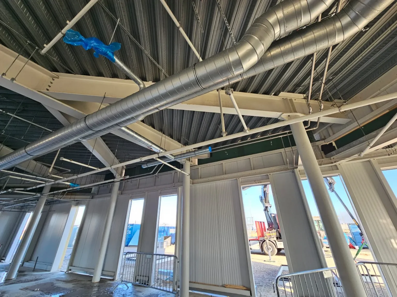 We maakten de binnenzijde volledig winddicht, zodat het gebouw beschermd was tegen de zware omstandigheden op de Maasvlakte.