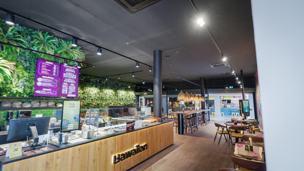 Voor Hawaiian Pokebowls mochten wij samen met Spect een van hun nieuwe vestigingen realiseren. Hawaiian is een snelgroeiende formule in gezonde fastfood met PokeBowls en heeft de ambitie om in Nederland stevig uit te breiden. De locaties in Alexandrium en de Hoogstraat in Rotterdam zijn perfecte plekken: midden in drukbezochte gebieden met veel passanten en dus ideale zichtbaarheid.